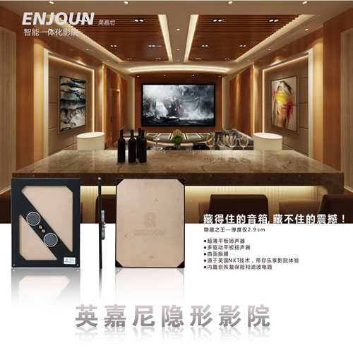 英嘉尼隱形影院主要采用自主研發(fā)設(shè)計生產(chǎn)的隱形音響V2,厚度僅2.9cm,可以完全嵌入墻體,無需聲場改造,完全隱形與現(xiàn)代設(shè)計媲美。