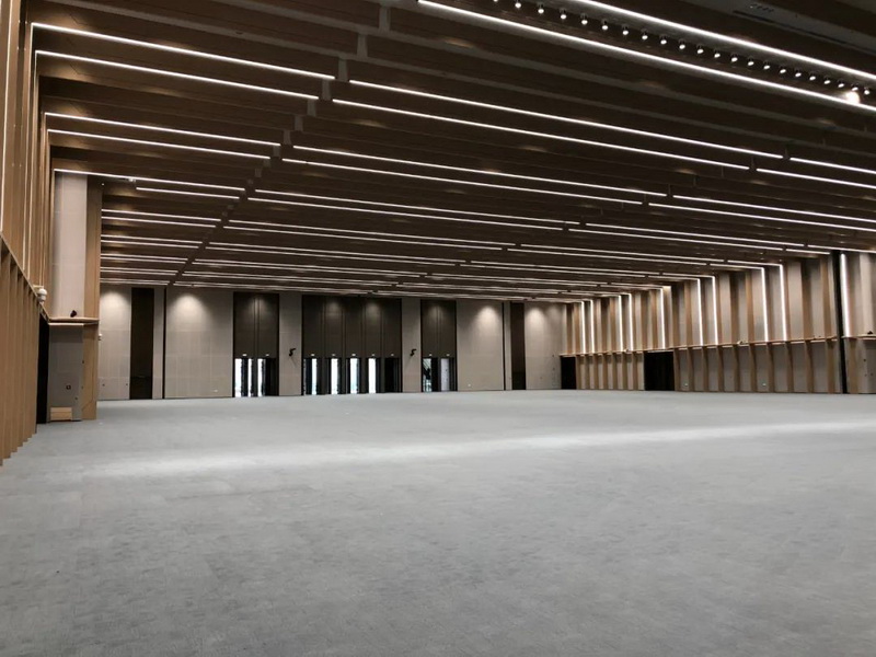 東區主要有4個大廳:地下一層新聞發布AB廳、CD廳、一層圓桌宴會廳、二層圓桌會議廳;這4個大廳的設計思路是新聞發布廳AB和CD之間互通互聯,一層圓桌宴會廳和二層圓桌會議廳進行互通互聯。